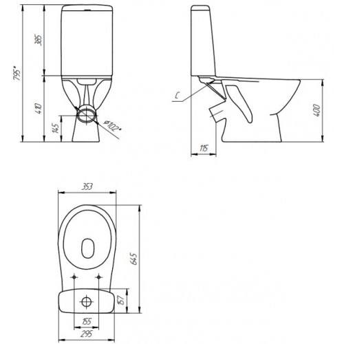 унитаз керамический, косой выпуск; бачок смывной керамический с нижним подводом воды; двухуровневый спускной механизм; сиденье для унитаза из дюропласта с функцией плавного закрывания; монтажный комплект; инструкция/гарантийный талон